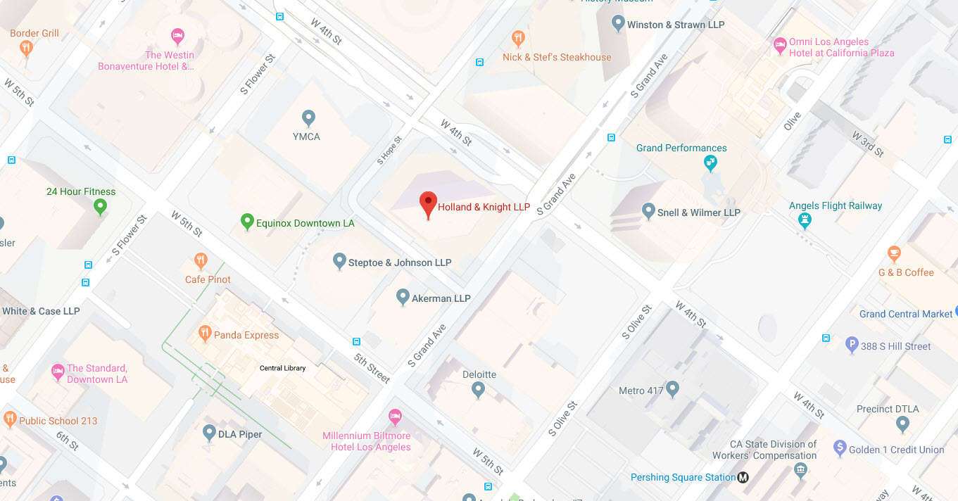 At the firm's largest West Coast office, our Los Angeles attorneys counsel on class action defense, commercial litigation, construction law, corporate law, environmental law, energy and clean technology, Native American law, hospitality, intellectual property, labor and employment law on behalf of management and related litigation, government advocacy, private wealth services, product liability, real estate, software/hardware and Internet companies, taxation, telecommunications and media, transportation, white collar crime and compliance, and trusts, estates and fiduciary dispute resolution.