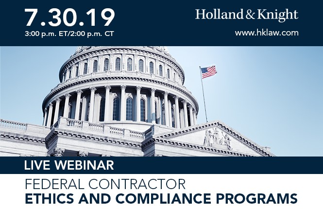 Please join Government Contracts Attorneys Bob Tompkins and Rodney Perry for "Federal Contractor Ethics and Compliance Programs: Meeting the Government’s Evolving Expectations." This live webinar will address how to enhance your ethics and compliance program to meet the government's expectations and in a way that achieves your business goals.