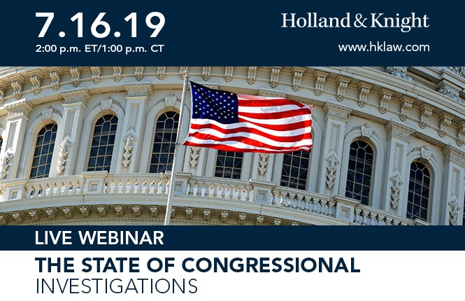 Please join Holland & Knight and Bloomberg Government for "The State of Congressional Investigations," during which our attorneys and analysts will touch on a wide range of industry issues regarding government investigations and what we can expect from the 116th Congress.