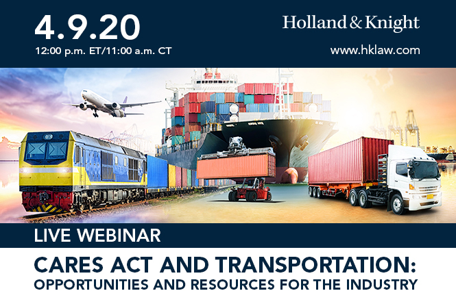 Please join Holland & Knight for our timely and highly informative webinar presentation, "CARES Act and Transportation: Opportunities and Resources for the Industry."