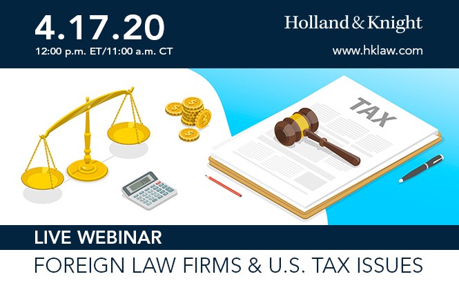 Please join Holland & Knight for our live webinar presentation, "What Non-U.S. Tax and Financial Advisors Should Know about U.S. Taxation Relief in Response to the COVID-19 Pandemic."