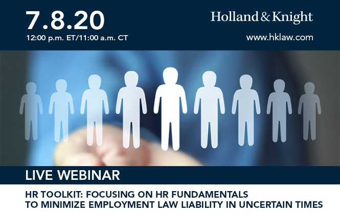 Holland & Knight's HR Toolkit Series highlights fundamental HR best practices that are critical to help minimize employment law liability. During these unprecedented and challenging times, a renewed focus on the basics is critical for the success of every employer's HR function.