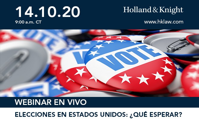 La firma de abogados Holland & Knight tiene el gusto de invitarlo a participar en un webinar en el que el socio Francisco Sánchez, co-chair de la Practica de Comercio Internacional de la firma, analizará qué se puede esperar en Colombia con las próximas elecciones presidenciales en Estados Unidos y el potencial panorama que se enfrentaría con la victoria de cada uno de los candidatos. El conferencista abordará además la situación de comercio exterior con Colombia y analizará la política exterior entre los dos países. Acompáñenos.