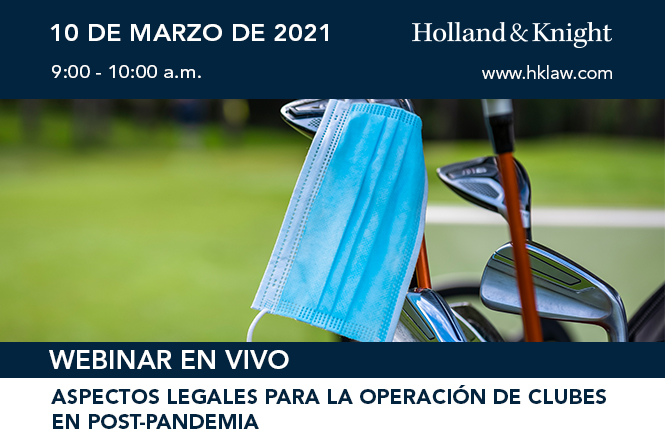 Holland & Knight se complace en invitarlo a nuestra presentación, "Aspectos legales para la operación de clubes en post-pandemia".