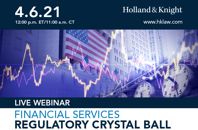 Please join Holland & Knight's Financial Services Regulatory Team for the second installment of our 2021 financial services webinar series as we provide our take on what to expect in the coming year and the impact that the change in administrations is having on the financial services landscape. Significant regulatory and legislative changes are being enacted that will further evolve with the new administration and Congress.