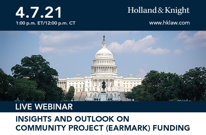 Please join members of Holland & Knight's Public Policy & Regulation Group for a webinar covering Community Project Funding (CPF), formerly known as earmarks. Team members will share insights on the new process as well as guidance on steps you can take to have your project considered.