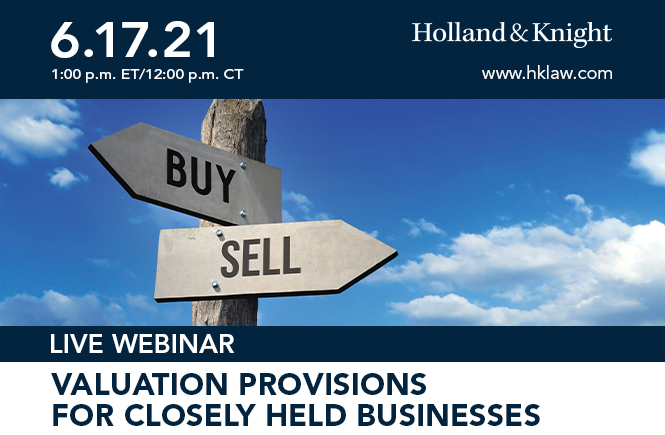 Please join Holland & Knight for a webinar where attorneys Brent Berselli and Heidi Nadel will discuss best practices for drafting valuation provisions in corporate governance documents and buy-sell agreements.