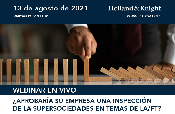 Holland & Knight lo invita a un conversatorio virtual sobre las obligaciones que tienen estas empresas de implementar el sistema. José Vicente Zapata, socio de Holland & Knight, y Jaime Luis Posada, director del Compliance Business Area de RIG Legal, presentarán las 15 consideraciones generales que estas compañías deben tener en cuenta de cara al próximo vencimiento de este requerimiento y las condiciones legales que rigen el efectivo cumplimiento legal en esta materia.