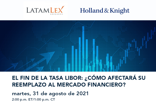 Los invitamos a participar junto a LatamLex y Holland & Knight en un webinar para comentar las posibles implicaciones para el mercado financiero causadas por la terminación inminente de la London Interbank Offered Rate (Libor) y su reemplazo por tasas de referencia alternativas sin riesgo como la Secured Overnight Financing Rate (SOFR).