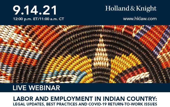 Attorneys John Haney and Jessica Laughlin will host a webinar to discuss labor and employment matters in Indian Country.