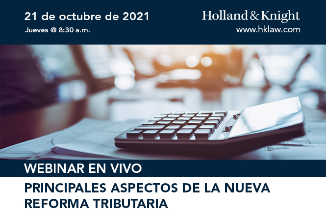 El área tributaria de Holland & Knight lo invita a un conversatorio virtual en el que el equipo de abogados analizará los principales aspectos de la nueva Reforma Tributaria aprobada por el Congreso de la República y las implicaciones que tendrá en las empresas y en sus declaraciones de impuestos a partir de este año.