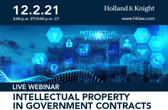 Please join Holland & Knight for a webinar on intellectual property in government contracts. During this presentation, our attorneys will discuss the rules that every contractor should know and how they are changing.