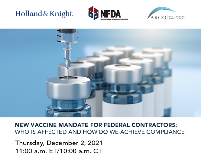 Litigation and Government Contracts attorneys Gordon Griffin and Kelsey Hayes will discuss the recent vaccine mandate from the perspective of building owners with federal leases during a webinar hosted by the NFDA. Topics covered will include who the new executive order affects, how far reaching the mandate is, and what organizations should be doing to ensure they are in compliance.