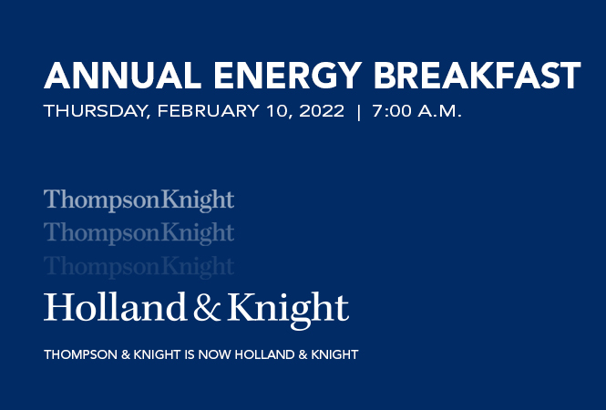 Holland & Knight invites you to the 15th Annual Energy Breakfast. Enjoy coffee and conversation with your Holland & Knight friends and fellow energy industry professionals. A hot breakfast buffet and complimentary valet parking will be provided.