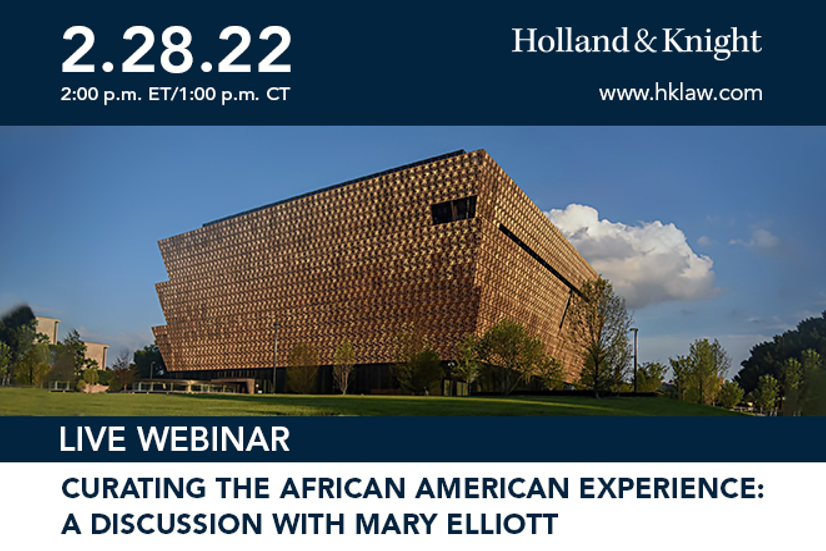 Join Holland & Knight's Washington, D.C., Diversity and Inclusion Committee for a discussion with Mary Elliott, the curator of American Slavery and Freedom at the Smithsonian's National Museum of African American History and Culture.