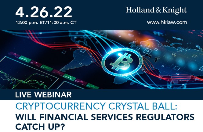 Please join Holland & Knight's Financial Services Regulatory Team for a roundtable discussion on an overview of cryptocurrency regulations, an update of recent trends and what to look out for in the rest of 2022.