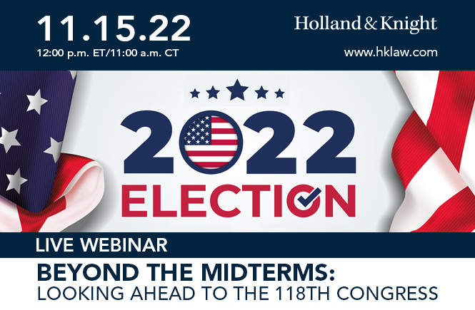 Please join Holland & Knight and Bloomberg Government for an exclusive post-election breakdown. You'll hear from knowledgeable election observers as they analyze the midterm results and provide insights to help you prepare for what to expect in 2023 and beyond.