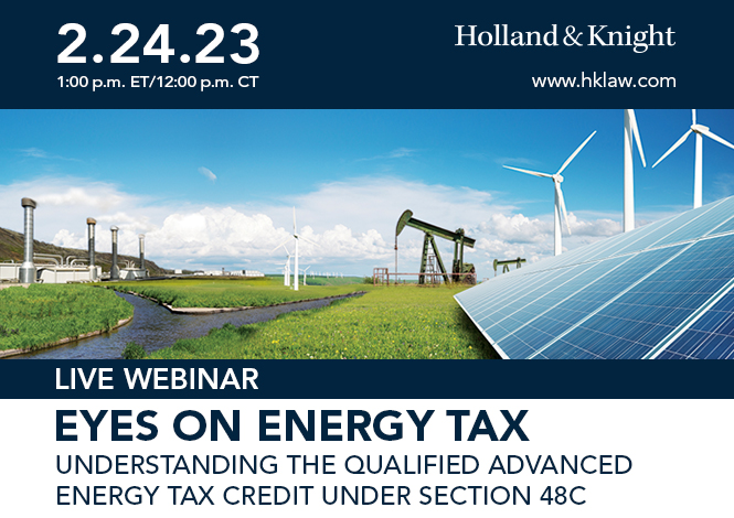 Holland & Knight's Energy Tax Team will host an informative webinar to discuss this significant opportunity.