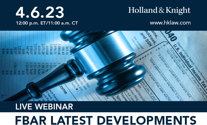 Please join Holland & Knight for a webinar in which attorneys Andrea Darling de Cortes, James Dawson, Chad Vanderfoef and Alan Granwell will discuss the latest FBAR trends and developments.