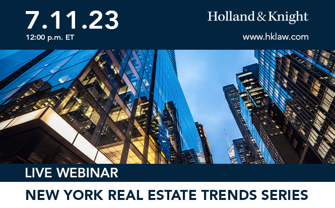 Please join Holland & Knight's Real Estate Practice for the fourth presentation in our webinar series on New York Real Estate Trends.
