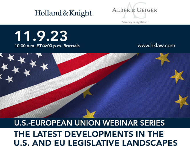 Please join us for a virtual discussion with Rich Gold, leader of Holland & Knight's Public Policy & Regulation Group, as he travels across the Atlantic to speak with Dr. Andreas Geiger and Albi Alla from European-based government relations firm Alber & Geiger. Mr. Gold, Dr. Geiger and Mr. Alla will discuss the current state of politics in the United States and Europe.