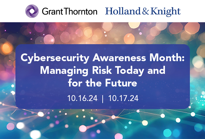 Please join Holland & Knight and Grant Thornton as we dive into the future of digital risk with a panel of experienced professionals in an informative discussion of key cybersecurity audit, legal and insurance trends. Our presentation serves as an opportunity to gain valuable insights and strategies to be better equipped in light of emerging threats to business computing systems, networks and data.