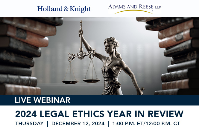 Join legal ethics and professional responsibility attorney Trisha Rich and Adams and Reese Partner Lucian Pera for a free one-hour review of the most important developments of the last year (or so) in legal ethics and lawyering.