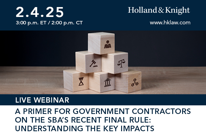 In this webinar, attorneys from Holland & Knight's Government Contracts Group will provide a concise summary of the most impactful changes made by SBA and their practical impact on prime contractors, subcontractors and joint venture members who participate in small business and socioeconomic set-aside awards.