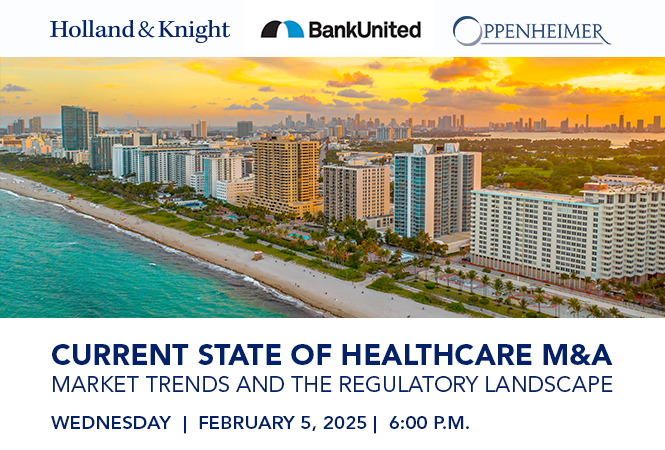Please join Holland & Knight, BankUnited and Oppenheimer as we kick off the new year with a panel discussion on the state of healthcare services mergers and acquisitions, followed by a reception.