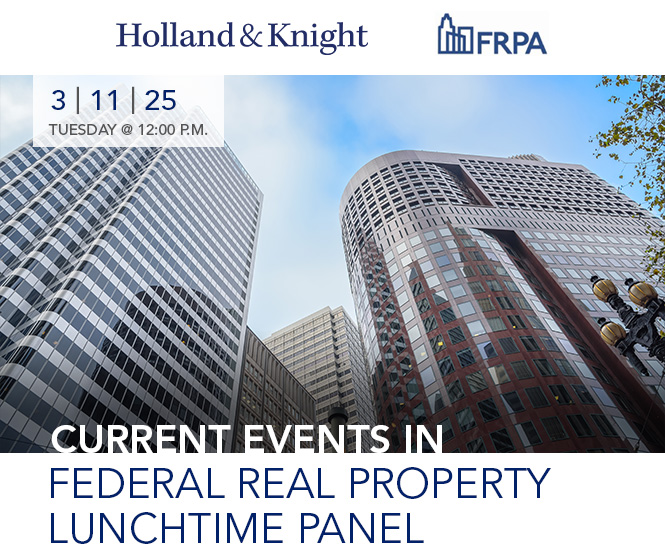 The Federal Real Property Association (FRPA) will try to make sense of everything with a panel of top legal minds and one of the busiest brokers in federal real estate. We hope you can join us for this highly informative discussion at Holland & Knight's Washington, D.C., office.