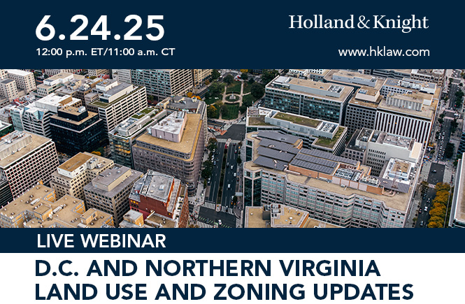 Please join Holland & Knight's D.C. and Northern Virgina Land Use Team for a highly informative webinar on current zoning, development and legislative updates in the District of Columbia and Northern Virginia.