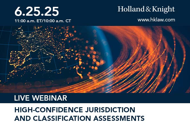Please join Holland & Knight for an in-depth webinar that will discuss the tools and strategies needed to confidently navigate jurisdiction and classification assessments under the International Traffic in Arms Regulations (ITAR) and Export Administration Regulations (EAR). As recent enforcement cases show, failing to correctly determine an item's export control jurisdiction and classification can lead to a host of violations and significant compliance challenges.