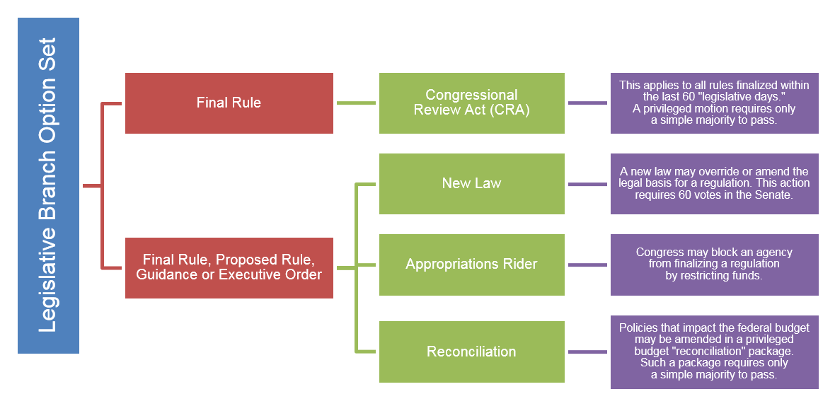 Holland & Knight's Energy Team has developed the charts below to outline the executive and legislative options the Trump Administration and Republican Congress may utilize to modify or invalidate regulations: