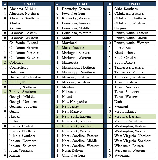 The trend line for government-initiated FCA actions should increase over the next few years. DOJ recently added a cadre of new affirmative civil enforcement attorneys, whose role will include initiating cases under the FCA. The new Assistant United States Attorneys (AUSAs) are being placed throughout the country—and offices where there is a hotbed of government contracting and healthcare are receiving more than one new AUSA. While most U.S. Attorney's Offices will receive one additional AUSA for affirmative civil enforcement, DOJ announced that offices such as Colorado, Middle District of Florida, Southern District of Florida, Massachusetts, New Jersey, Eastern District of New York, Southern District of New York, and Eastern District of Virginia, would receive two.