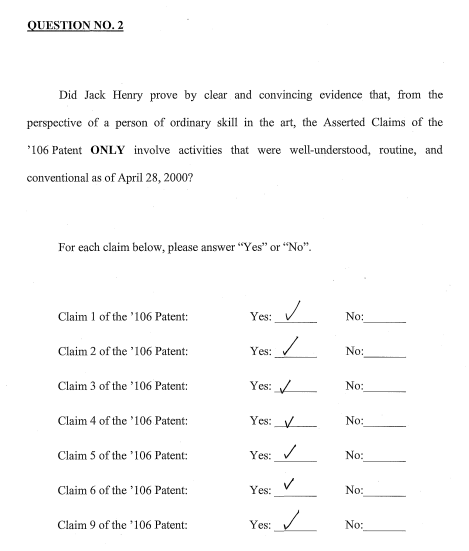 The inquiry was eventually put to the jury, which found that the asserted claims "ONLY involve activities that were well-understood, routine, and conventional as of the priority date."