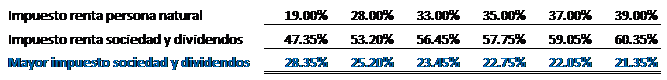 La pregunta es, si usted quiere desarrollar un negocio, lo haría como persona natural o con una sociedad, al comparar esta carga de impuesto sobre la renta e impuesto para dividendos: