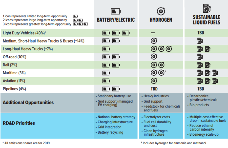 Continued innovation, research, development and demonstration across the transportation industry will be necessary to further efforts to achieve net-zero carbon emissions by 2050. The Blueprint identifies key areas of focus that the agencies will target in the coming years, including EVs and supporting infrastructure, hydrogen and hydrogen refueling networks, and sustainable aviation fuels. Additional funding opportunities and incentives will continue to be made available to promote and further their development and demonstration.