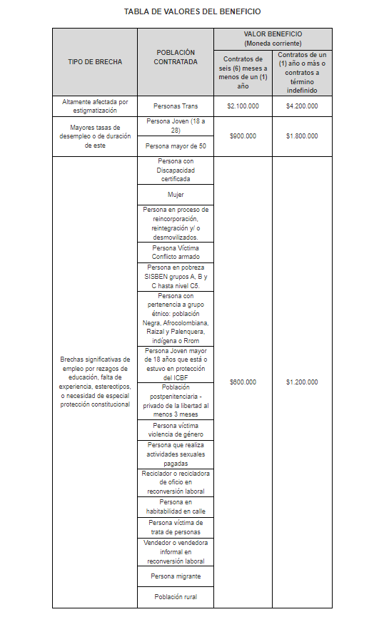 Tanto en el decreto expedido por la Alcaldía Mayor de Bogotá como en la herramienta tecnológica dispuesta por el Ministerio del Trabajo se reconoce expresamente la vulnerabilidad de las personas que, en desarrollo de procesos de paz, buscan reinsertarse a la vida en sociedad y se crean incentivos para que su transición sea efectiva. El decreto en cita, en particular, dispone que las empresas que participen en el programa de vinculación de población vulnerable podrán acceder a los beneficios económicos que se detallan en este boletín.