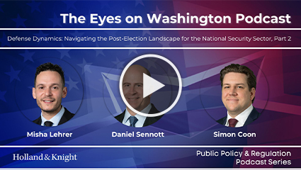 Dan Sennott is an attorney in Holland & Knight's Washington, D.C., office, where he co-leads the firm's National Security & Defense Industry Group. In addition, he is a co-leader of the Public Policy & Regulation Group's National Security and Defense Team. Mr. Sennott has substantial experience with defense issues, having held senior leadership positions in both the U.S. military and the federal government, including most recently serving as the minority staff director for the House Armed Services Committee.