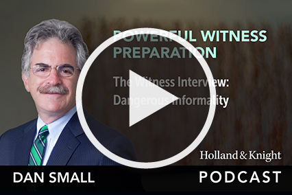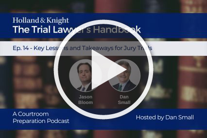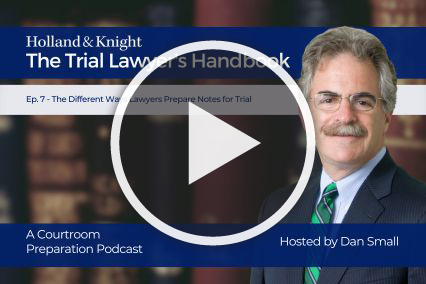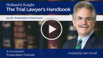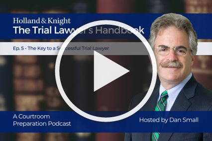 Mr. Small has written several books on litigation for the American Bar Association, including Preparing Witnesses, Going To Trial and Lessons Learned from a Life on Trial, that are used in CLE programs he gives throughout the country. He was a Lecturer on Law at Harvard Law School. He is also a frequent television, radio and newspaper commentator, as well as the host of Holland & Knight’s Powerful Witness Prep Podcast Series and The Trial Lawyer's Handbook Podcast Series.