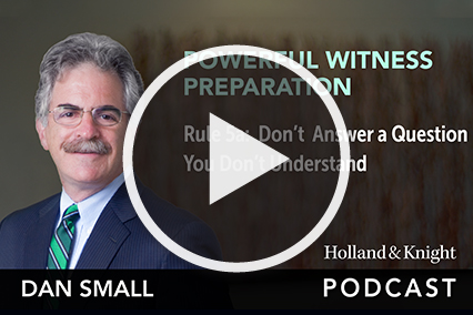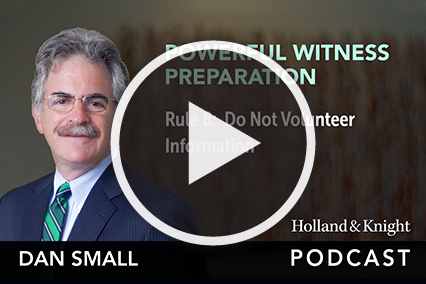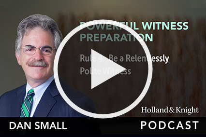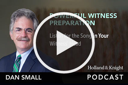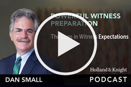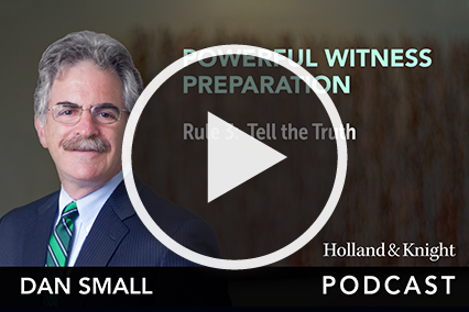 Mr. Small has written several books on litigation for the American Bar Association, including Preparing Witnesses, Going To Trial and Lessons Learned from a Life on Trial, that are used in CLE programs he gives throughout the country. He was a Lecturer on Law at Harvard Law School. He is also a frequent television, radio and newspaper commentator, as well as the host of Holland & Knight’s Powerful Witness Prep Podcast Series and The Trial Lawyer's Handbook Podcast Series.