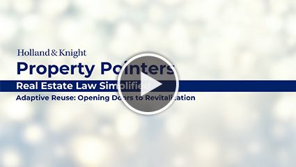 El uso del suelo y la zonificación son componentes esenciales en el portafolio de servicios que presta Holland & Knight para desarrollos inmobiliarios. A diferencia de otras firmas de abogados que dependen de firmas locales especializadas, nosotros contamos con abogados experimentados en el uso del suelo ubicados directamente en varias de nuestras oficinas locales.